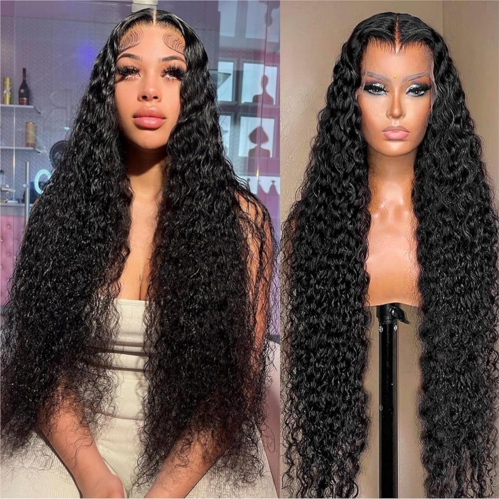 28Inch Water Wave Lace Front Wigs Pre Plucked Baby Hair 13X4 Transparent Water Wave Lace Frontal Wigs 150% Density Black Women Brazilian Virgin Natural Black