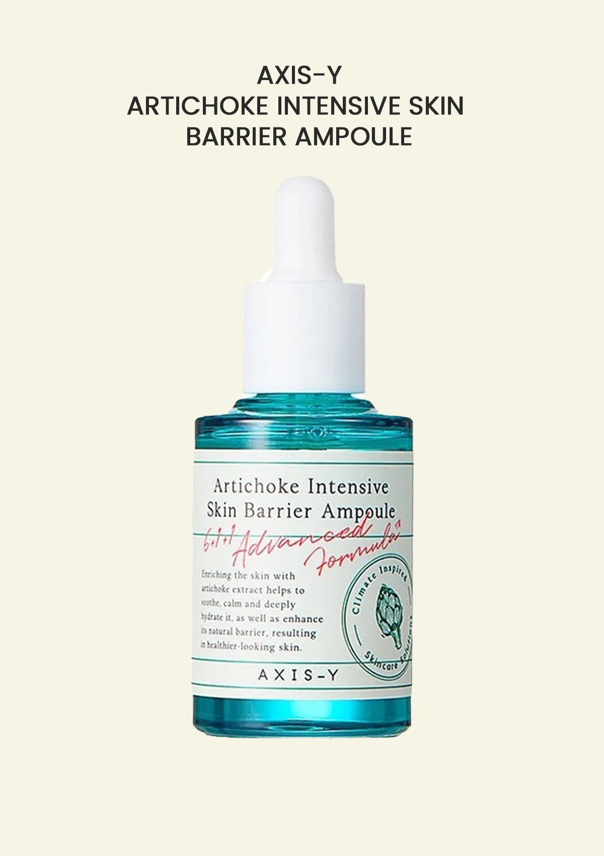 - Axis-Y Artichoke Intensive Skin Barrier Ampoule that delivers rich antioxidants, nutrients, and hydration to heal damaged, irritated skin barriers. Phytonutrients defend against bacteria and pollutants to prevent future breakouts and irritation.