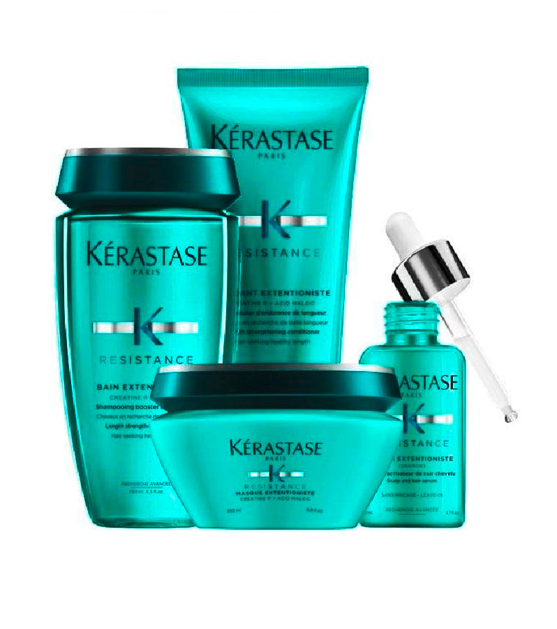 Kérastase Resistance Bain Extentioniste: The restorative hair bath to strengthen the hair fiber and reduce hair breakage ensures well-groomed and structurally changed hair. Creatine regenerates and strengthens the sensitive tips, giving the hair more stability, vitality and shine. Taurine invigorates the scalp and strengthens hair for improved hair fiber resistance.