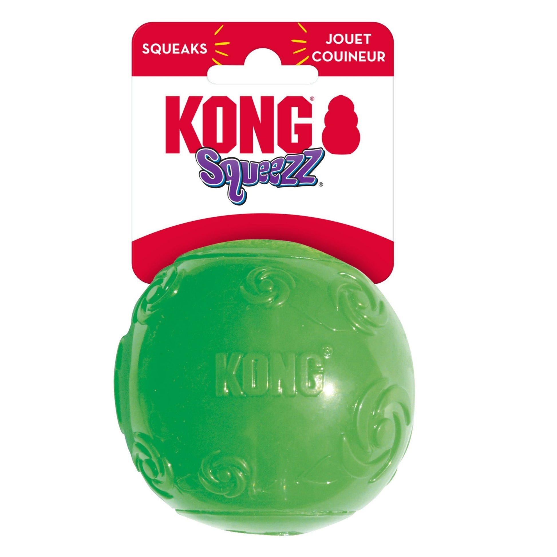 The KONG Squeezz Ball has a recessed squeaker that gives the safest and funnest squeak of any toy out there. Great for games of fetch, the erratic bounce and squeak guarantee tons of fun for you and your dog. br/>