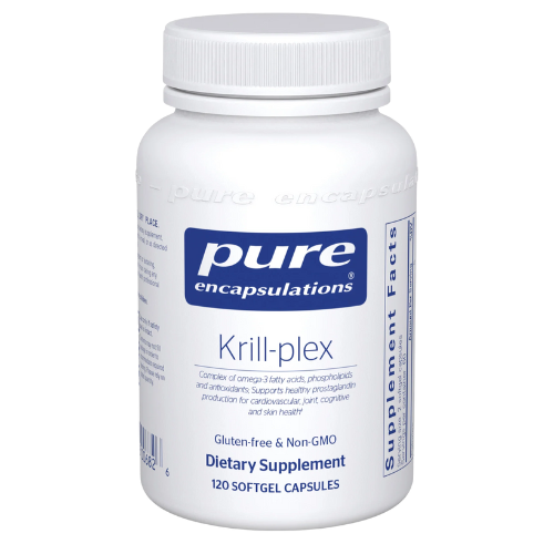 Krill oil provides an ideal essential fatty acid balance for healthy cardiovascular and platelet function. It is unique in that it offers a naturally occurring complex of omega-3 and omega-6 fatty acids, phospholipids and astaxanthin. Our Krill-Plex supplement offers support for heart, joint, brain and skin health. It also may support physical and emotional well-being during menstrual cycles.